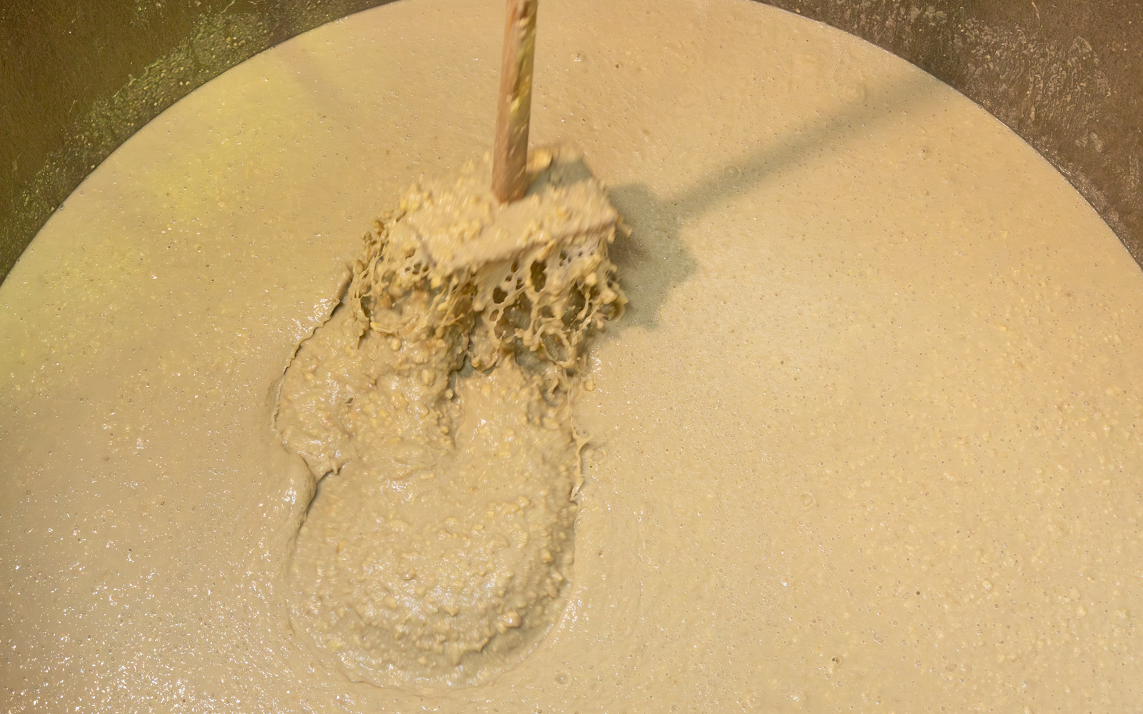 - After approximately 30 hours, maintenance work is performed to ensure uniform temperature of the koji.