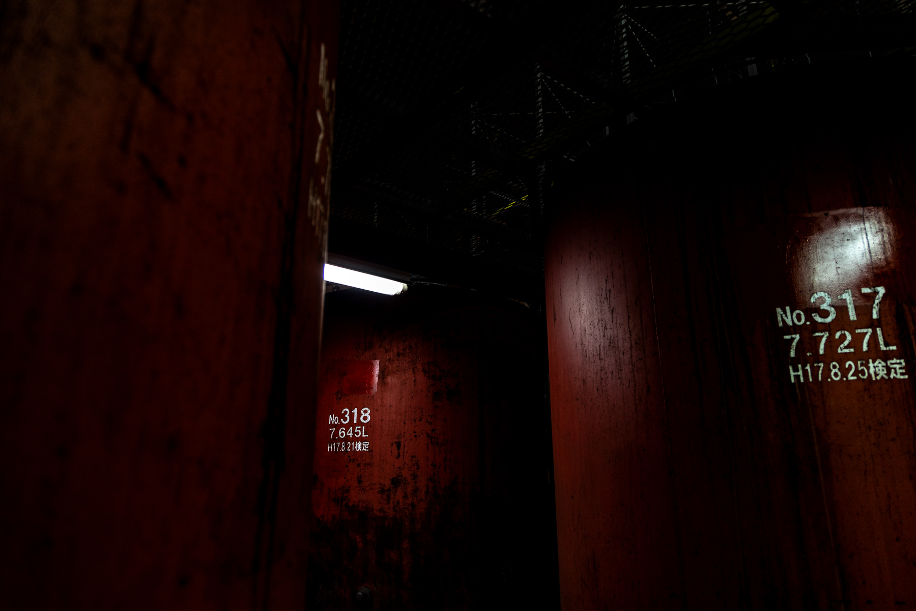 You will see tanks that have gone through secondary fermentation, distillation machines, and the storage status of barrel-aged shochu.